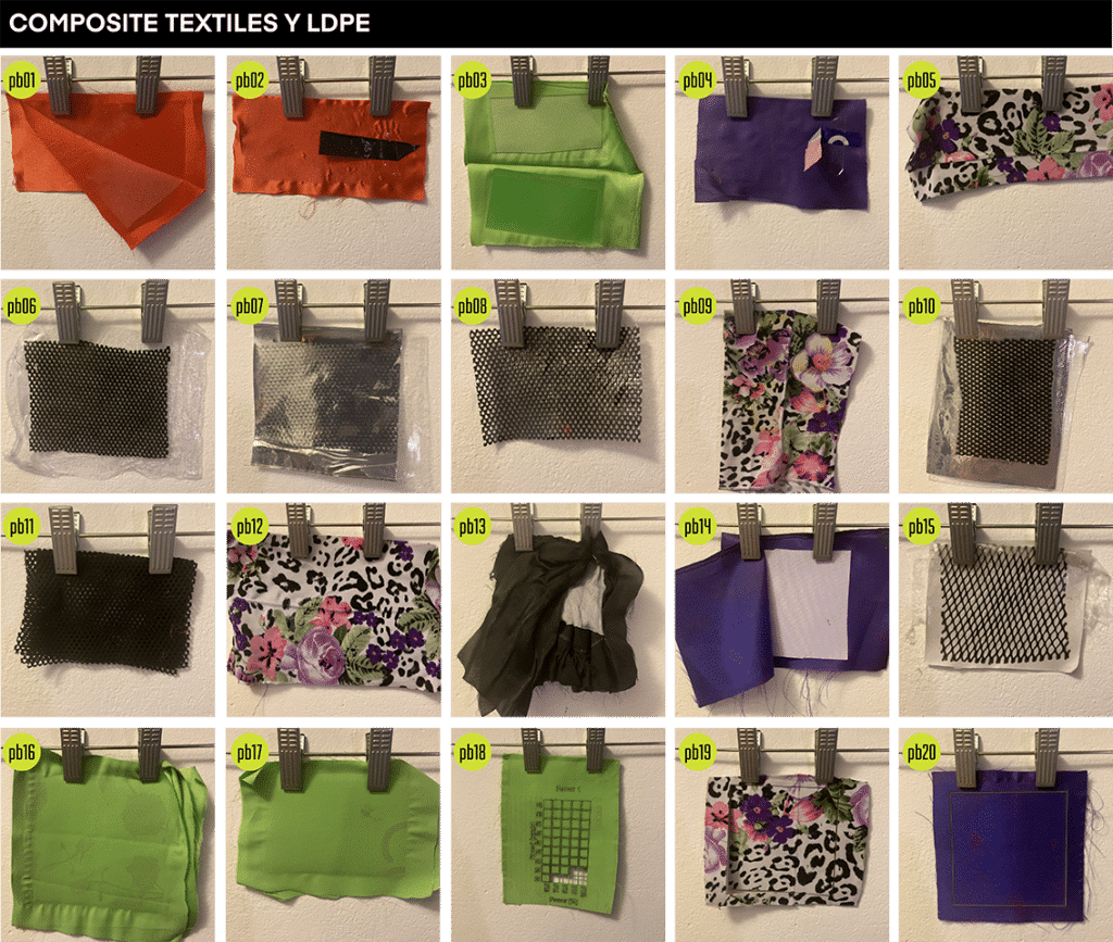 MUTEX (de Mutar y TeXtil) (Estudiante: María Lucía Rossi): La creación de placas laminadas a partir de textiles en desuso, unidas con aglomerantes plásticos reciclados como tapas de botellas (HDPE) y bolsas plásticas (LDPE). Este proyecto busca dar una segunda oportunidad a los textiles y reducir el desperdicio, fomentando la economía circular.