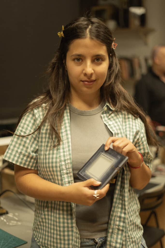 A sketchpad you can carry in your pocket. Inspired by Tamagotchis and the Nintendo DS, Camila’s Simsketch combines a touchscreen, E-Ink display, and playful 3D-printed casing to create a portable creative playground for digital artists on the move.