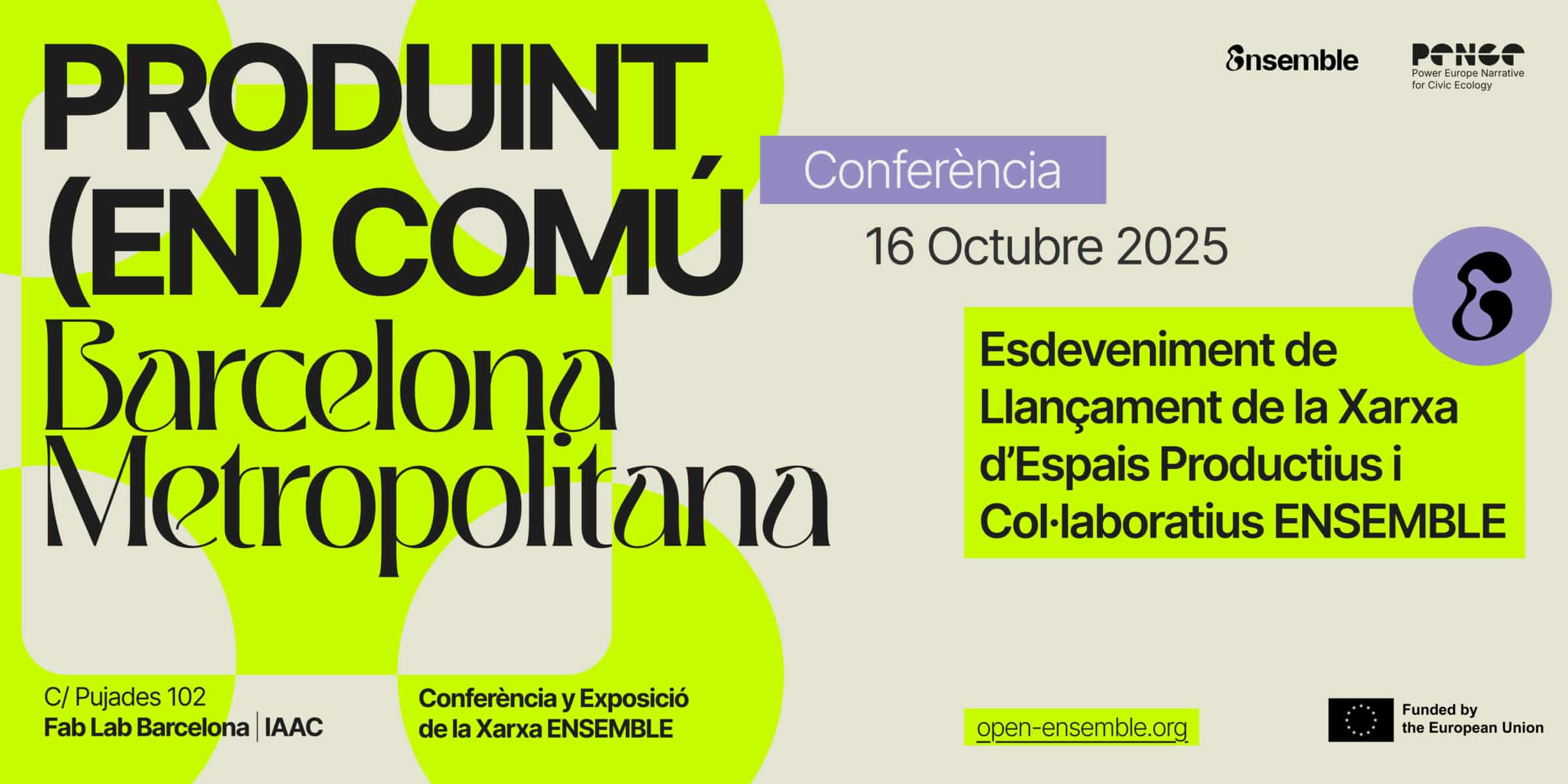 La Xarxa d’Espais Productius i Col·laboratius ENSEMBLE celebra el seu llançament oficial a Barcelona els dies 16 i 17 d’octubre de 2025 amb la Conferència i Exposició Produint (en) Comú, coincidint amb la Barcelona Design Week. Durant dues jornades obertes a la ciutadania, professionals, institucions i comunitats, l’esdeveniment combinarà presentacions, taules de debat i una exposició col·lectiva amb una selecció de projectes al Fab Lab Barcelona de l’IAAC – l’Institut d’Arquitectura Avançada de Catalunya, al Poblenou.