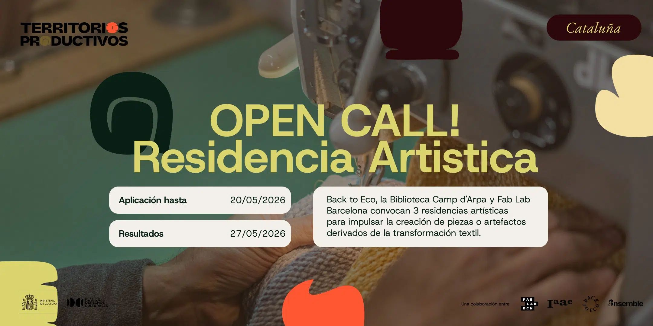 Fab Lab Barcelona, en colaboración con Back to Eco y la Biblioteca Camp de l’Arpa, lanza una convocatoria para 3 residencias artísticas en Barcelona en el marco del programa Territorios Productivos 2026.